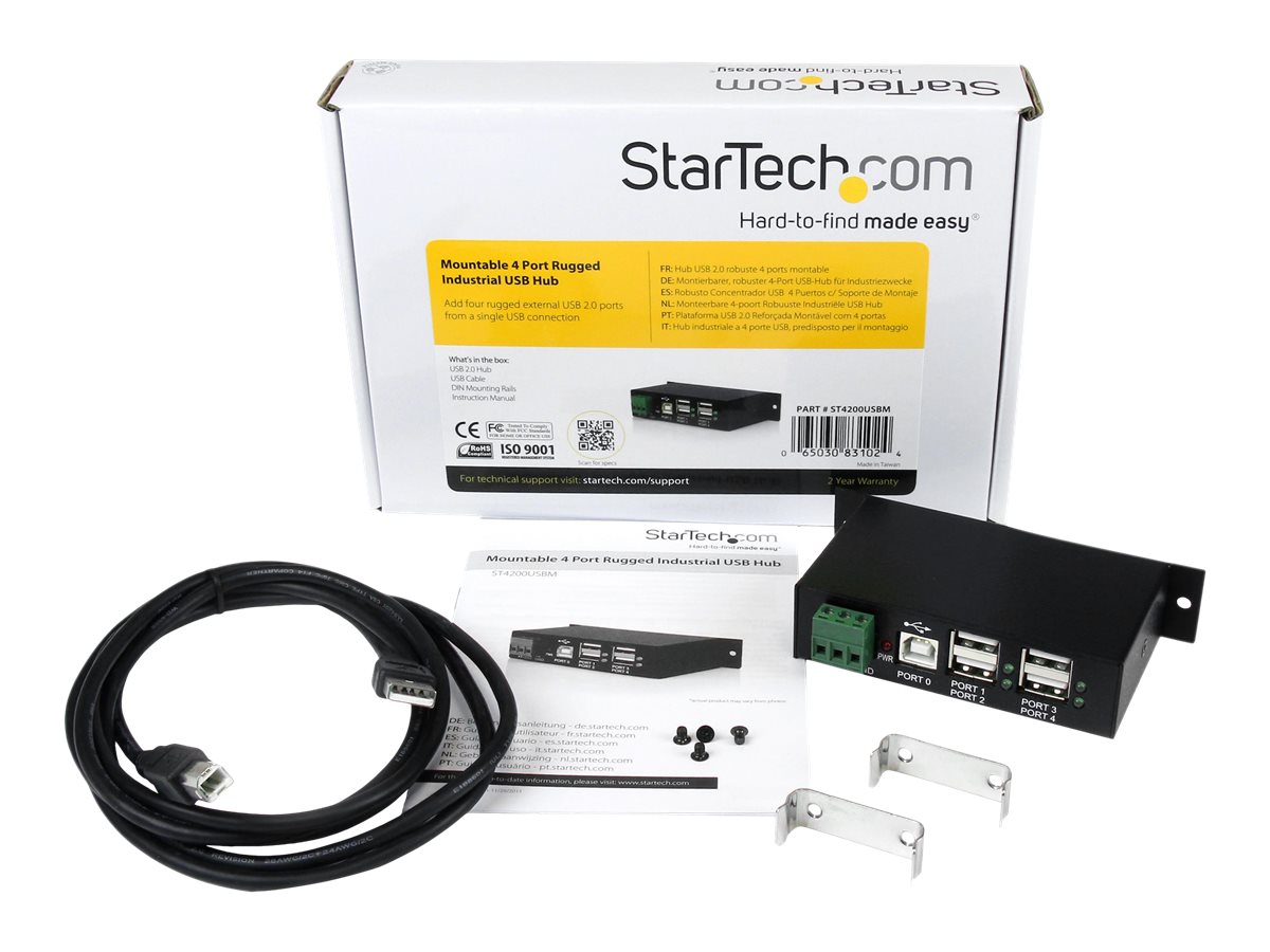 | Produktbeskrivelse | Startech Rackmount USB 2.0 Hub - 4 Port Rugged Industrial USB 2.0 Hub - hub - 4 porte |