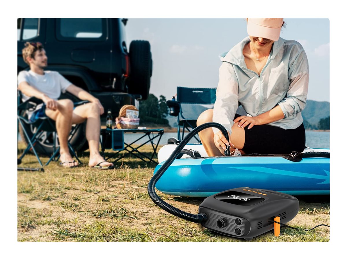 | Pakkeindhold | Opladningskabel, USB-C-opladningskabel, pumpeslange (1 m), 6 dyser, 12 V bilstrømadapter |