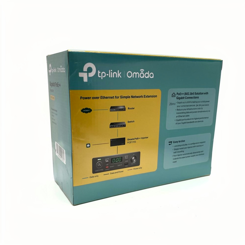PoE++-injektoren TL-POE170S overholder fuldt ud IEEE 802.3af/at/bt-standarderne med op til 60 W strømforsyning. Den kan nemt udvide dit netværk til steder, hvor der ikke er nogen strømledning eller stikkontakt, og hvor du ønsker at montere enheder som PTZ IP-kameraer, LED osv.