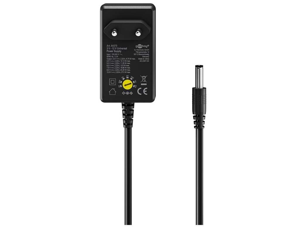 | Produktbeskrivelse | goobay - strømforsyningsadapter - universel - 27 watt |